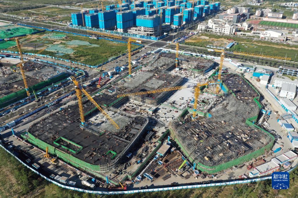 2022年9月7日拍攝的位于雄安新區(qū)啟動區(qū)的中國星網(wǎng)雄安新區(qū)總部大樓建設(shè)施工現(xiàn)場(無人機照片)。