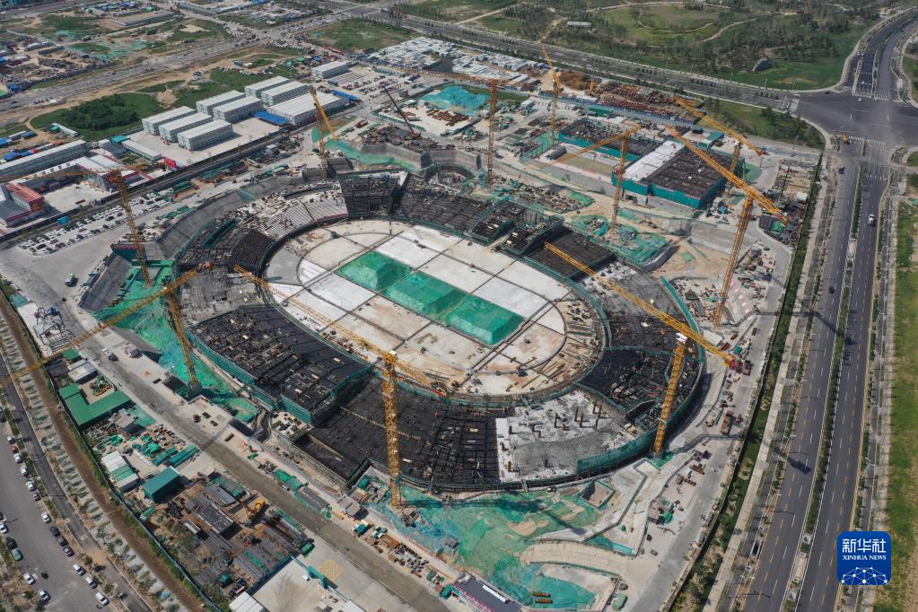 2022年9月1日拍攝的位于雄安新區(qū)啟動區(qū)的體育中心項目建設(shè)現(xiàn)場(無人機照片)。