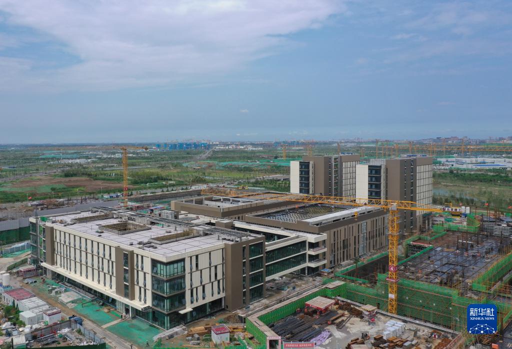 2022年7月29日拍攝的位于雄安新區(qū)啟動區(qū)的雄安新區(qū)宣武醫(yī)院項目建設(shè)現(xiàn)場(無人機照片)。