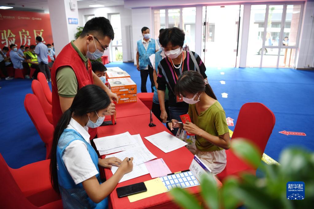 2022年8月26日,回遷居民在雄安新區(qū)雄東片區(qū)A單元安置房交付點領(lǐng)取鑰匙。