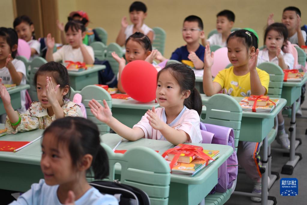 2022年9月1日,河北雄安新區(qū)容東片區(qū)容和悅?cè)菪W一年級新生在上開學第一課。