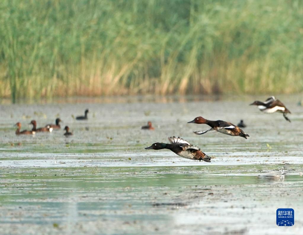 2022年7月22日在白洋淀拍攝的青頭潛鴨與白眼潛鴨。
