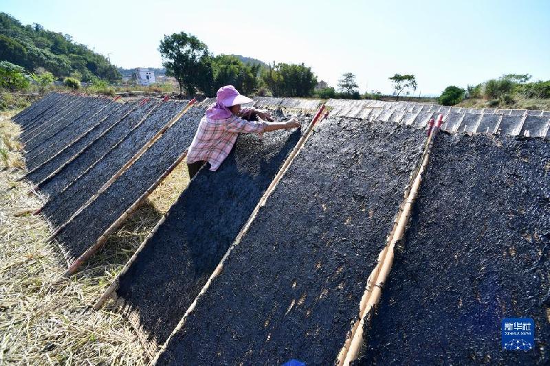 10月21日,福建省霞浦縣三沙鎮(zhèn)漁民在晾曬紫菜。