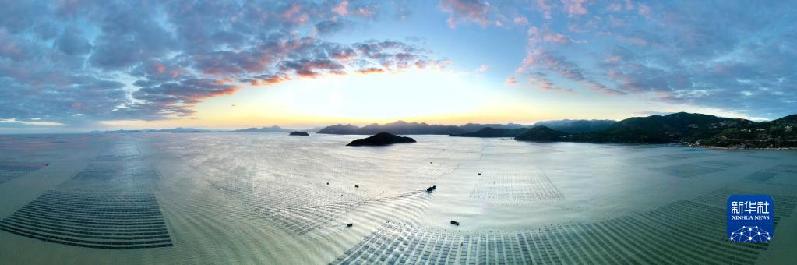 金秋十月,福建省寧德市霞浦縣6.5萬畝海上養(yǎng)殖紫菜迎來收獲時(shí)節(jié),漁民們操作收割船在大海中采收頭水紫菜,展開一幅海上秋收畫卷。霞浦縣素有“中國(guó)紫菜之鄉(xiāng)”美譽(yù),形成紫菜育苗、種植、加工全產(chǎn)業(yè)鏈條,年產(chǎn)值近10億元。紫菜成為當(dāng)?shù)厝罕娫鍪罩赂坏闹еa(chǎn)業(yè)。
