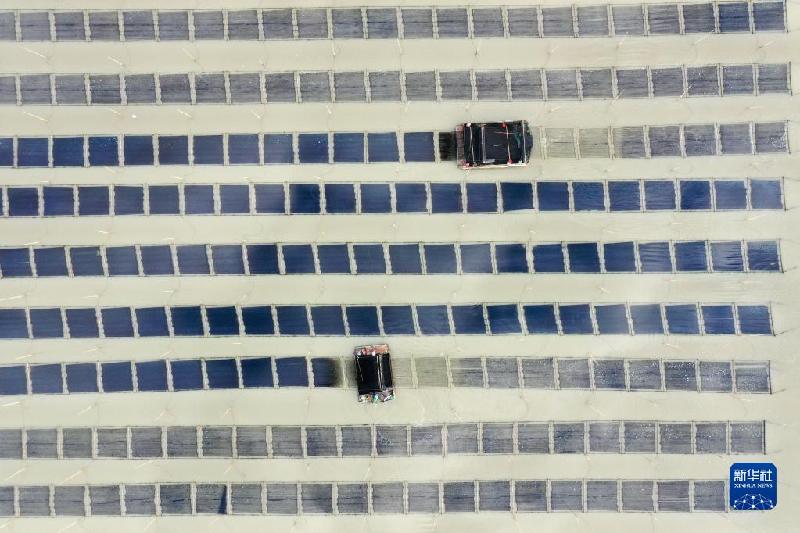 福建省霞浦縣三沙鎮(zhèn)漁民在海面上管護(hù)養(yǎng)殖的紫菜(10月20日攝,無人機(jī)照片)。