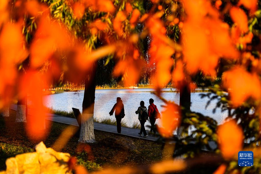 10月19日,市民行走在長春市友誼公園內(nèi)。