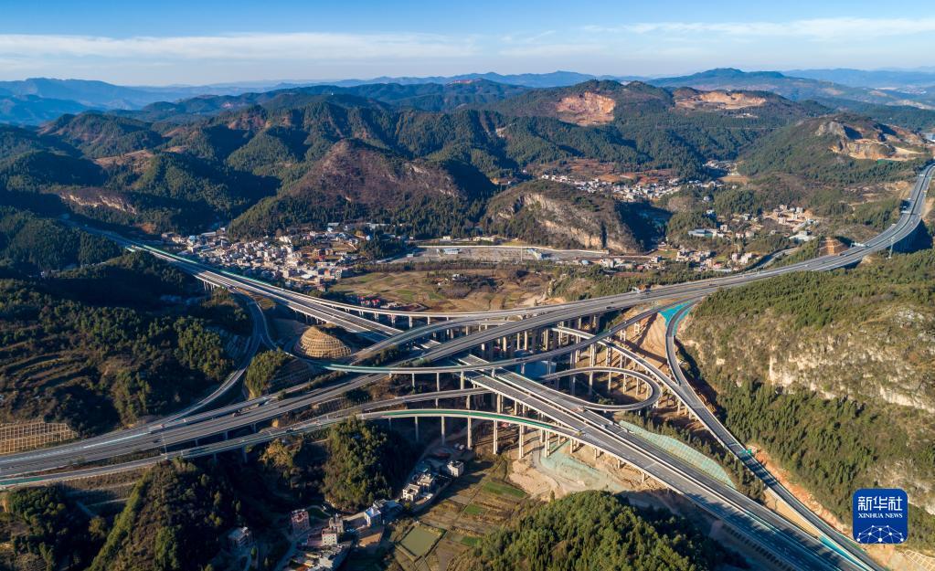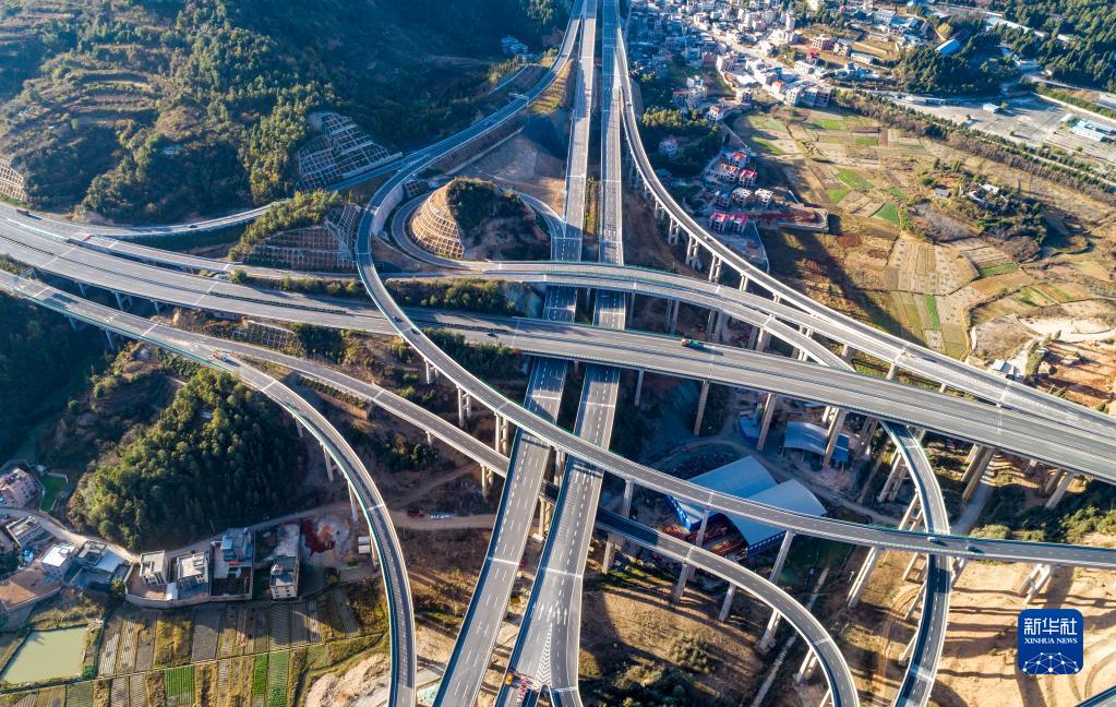 這是12月8日拍攝的新昆楚高速昆明西北繞城樞紐立交(無人機照片)。新華社記者 陳欣波 攝