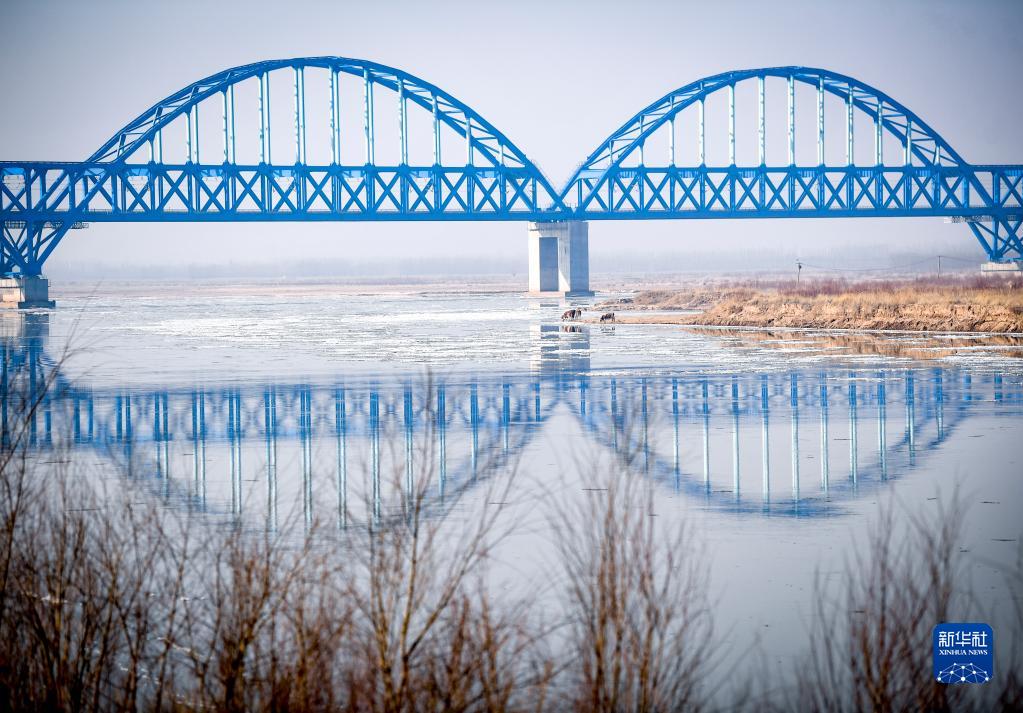 2023年1月2日,幾頭牛在位于寧夏銀川市境內(nèi)的黃河邊喝水。