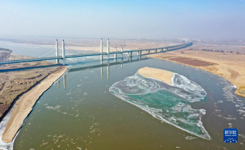 這是2023年1月2日在寧夏銀川市拍攝的黃河流凌(無(wú)人機(jī)照片)。