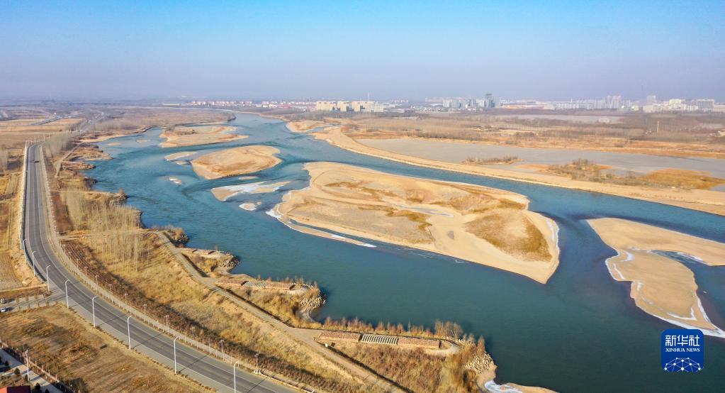這是2023年1月2日拍攝的位于寧夏銀川市境內(nèi)的黃河景觀(無(wú)人機(jī)照片)。