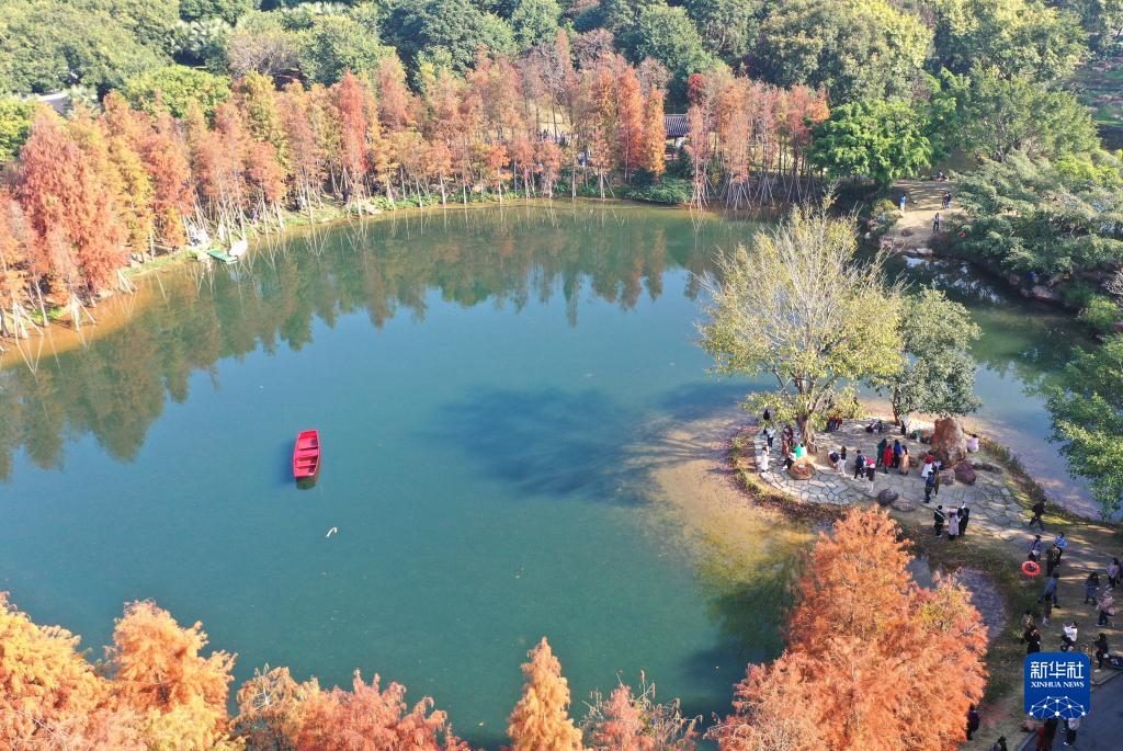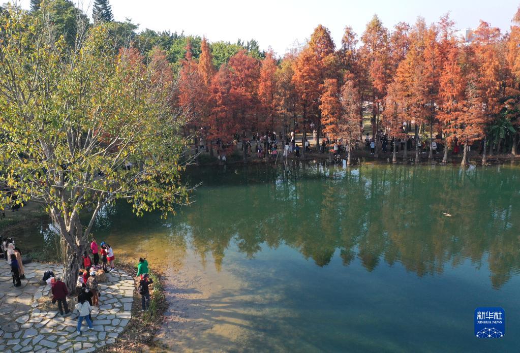 近日,廣西南寧青秀山風(fēng)景區(qū)中的杉樹樹葉日益紅艷,吸引了眾多市民前來觀賞。
