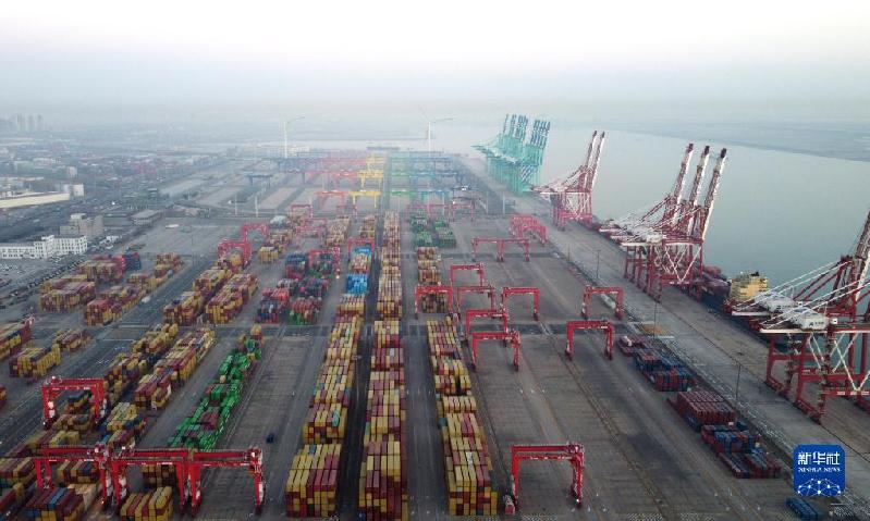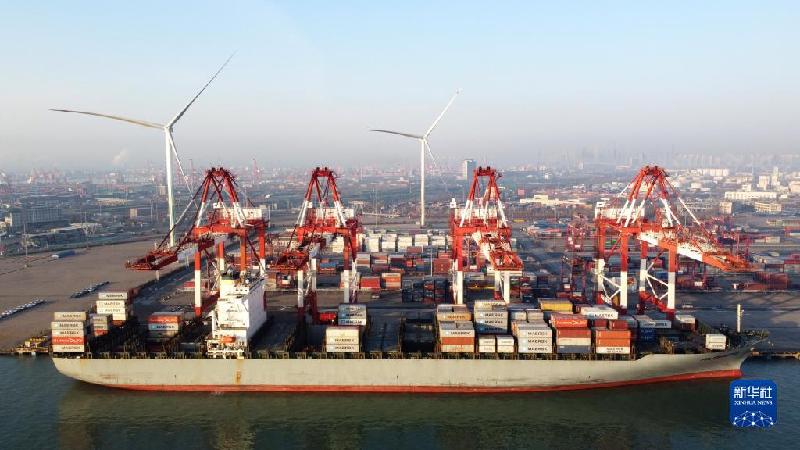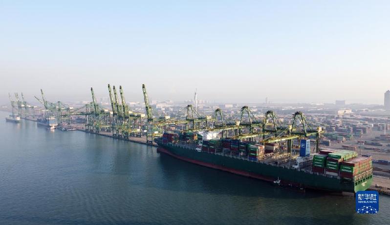 這是1月1日拍攝的天津港集裝箱碼頭(無人機(jī)照片)。