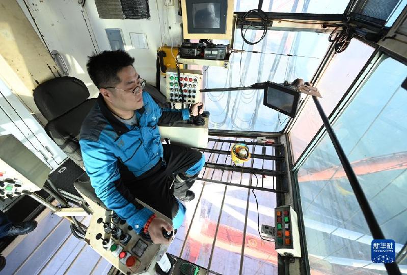 1月1日,岸橋司機(jī)在天津港聯(lián)盟國(guó)際集裝箱碼頭進(jìn)行裝卸作業(yè)。