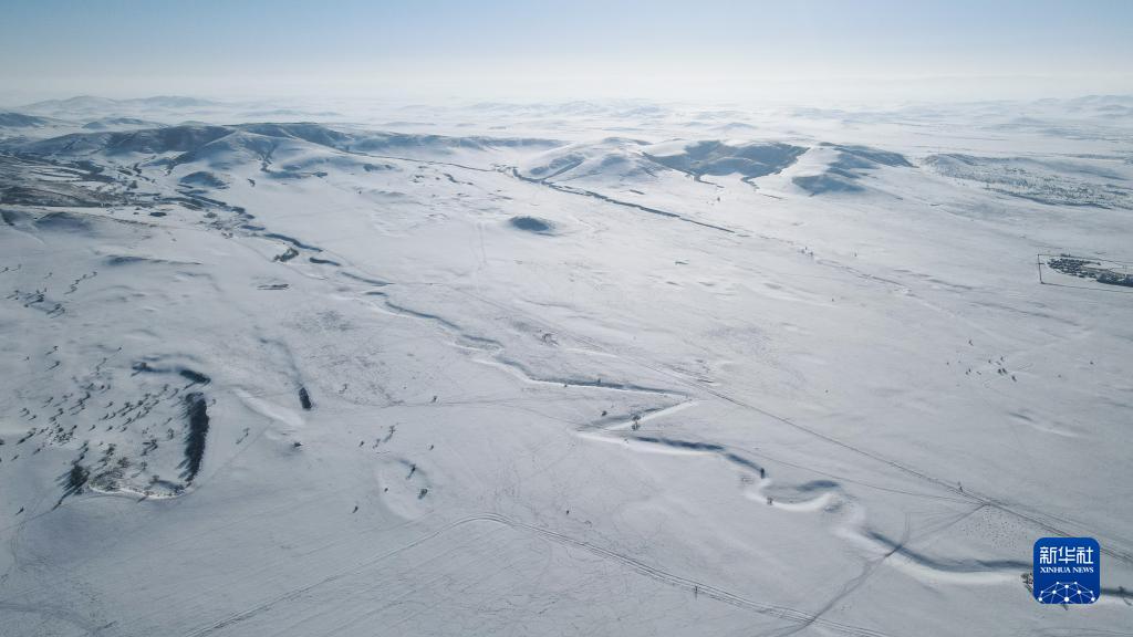 這是被大雪覆蓋的西烏珠穆沁旗境內(nèi)的草原(1月9日攝,無人機照片)。