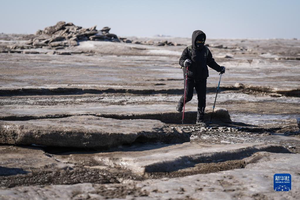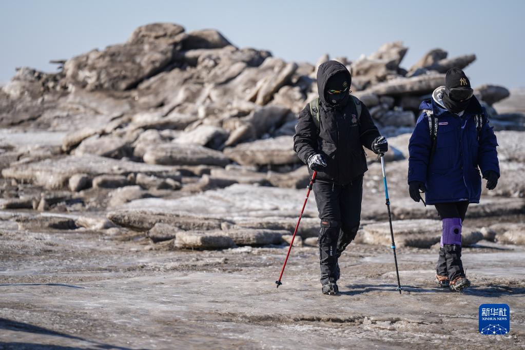 1月15日,業(yè)余選手在體驗(yàn)冰凌徒步。