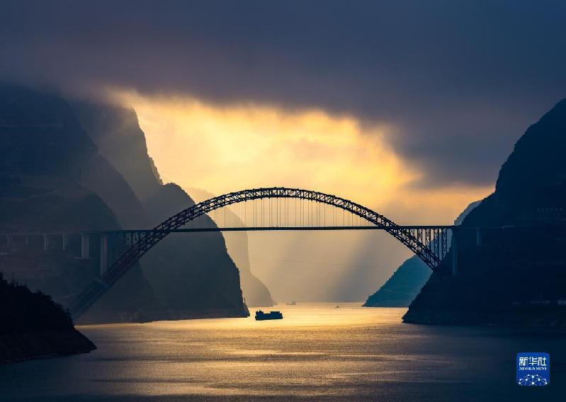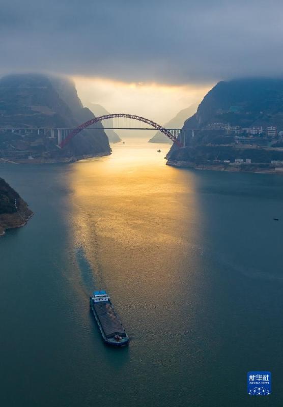 1月18日,船舶行駛在長(zhǎng)江三峽湖北省宜昌市秭歸縣水域。