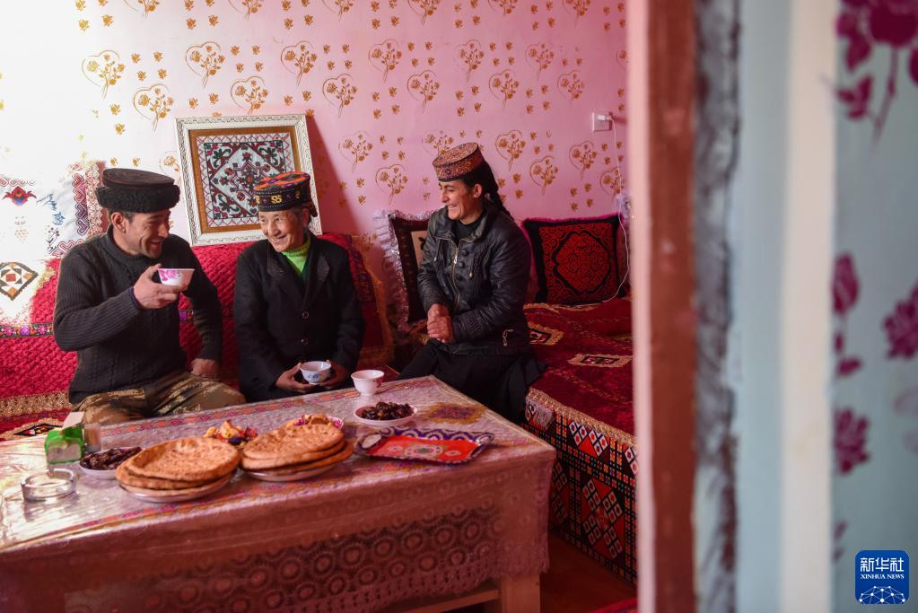新疆塔什庫爾干塔吉克自治縣塔提庫力易地扶貧搬遷安置點,村民在家中休息聊天(2022年12月20日攝)。新華社記者 丁磊攝