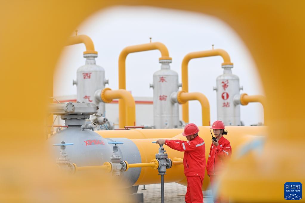 工作人員在新疆塔里木油田西氣東輸?shù)谝徽狙矙z(2023年2月6日攝)。新華社記者 李響 攝