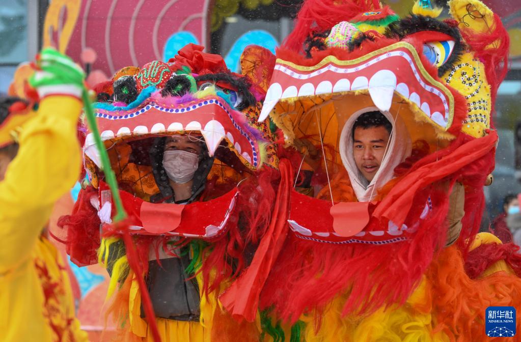 烏魯木齊天山萬科廣場,民間社火團隊演員在表演(2023年1月22日攝)。新華社記者 王菲 攝