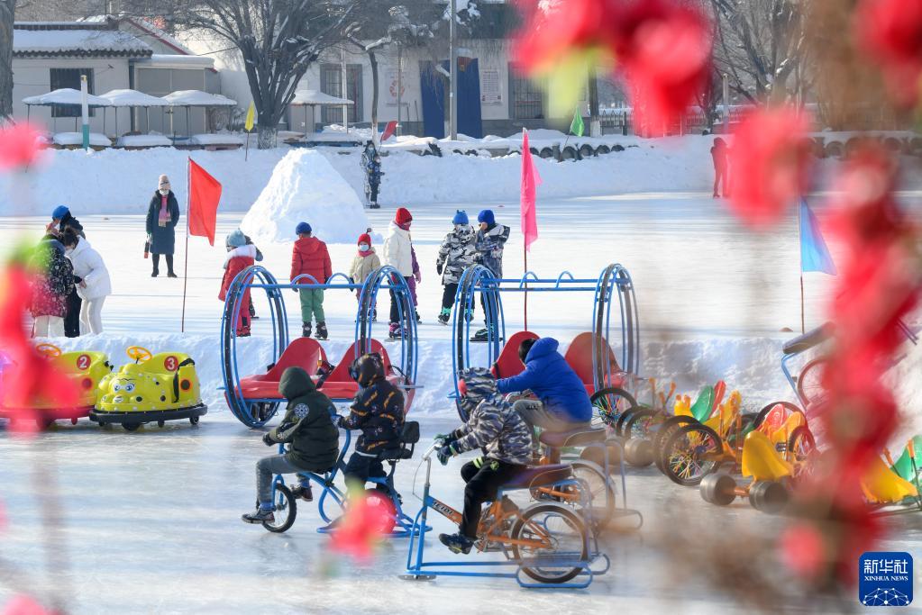 烏魯木齊紅山公園冰場,小朋友在玩耍(2023年1月15日攝)。新華社記者 王菲 攝
