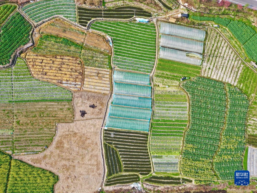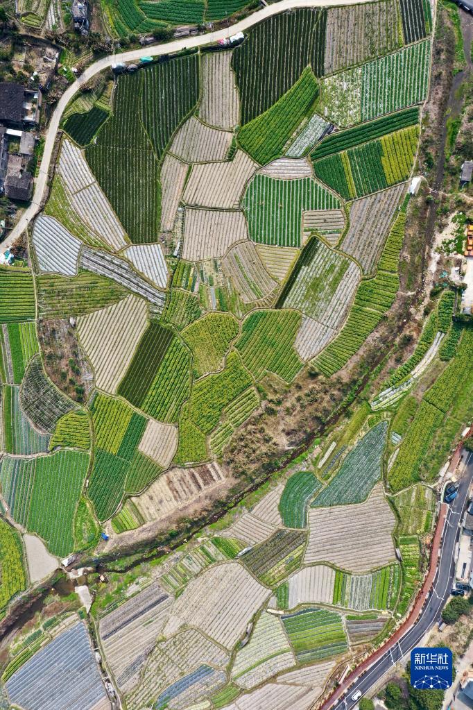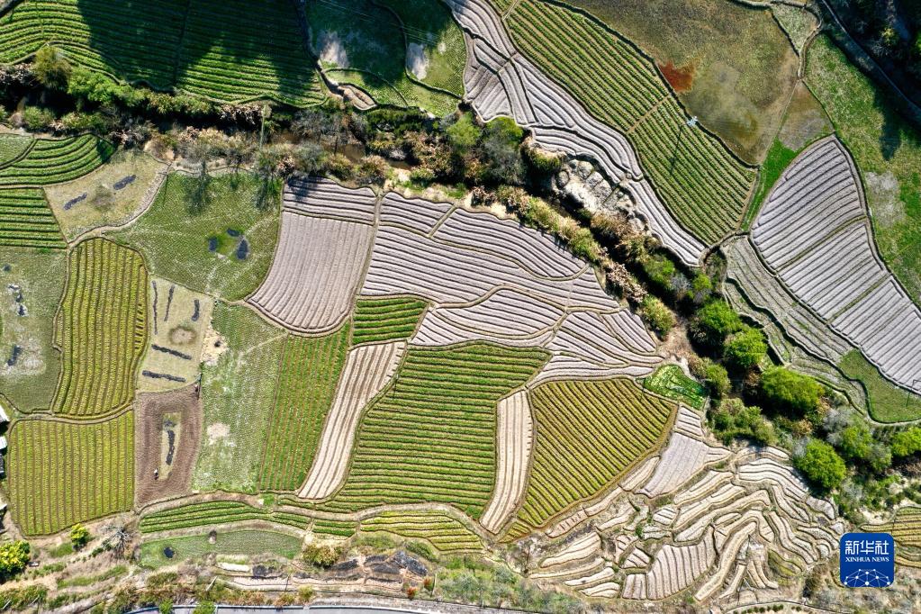 春耕時(shí)節(jié),在福建省福州市鄉(xiāng)村山嶺間,一塊塊形狀各異、五彩斑斕的田地猶如大地上的拼圖,呈現(xiàn)別樣的春耕畫卷。