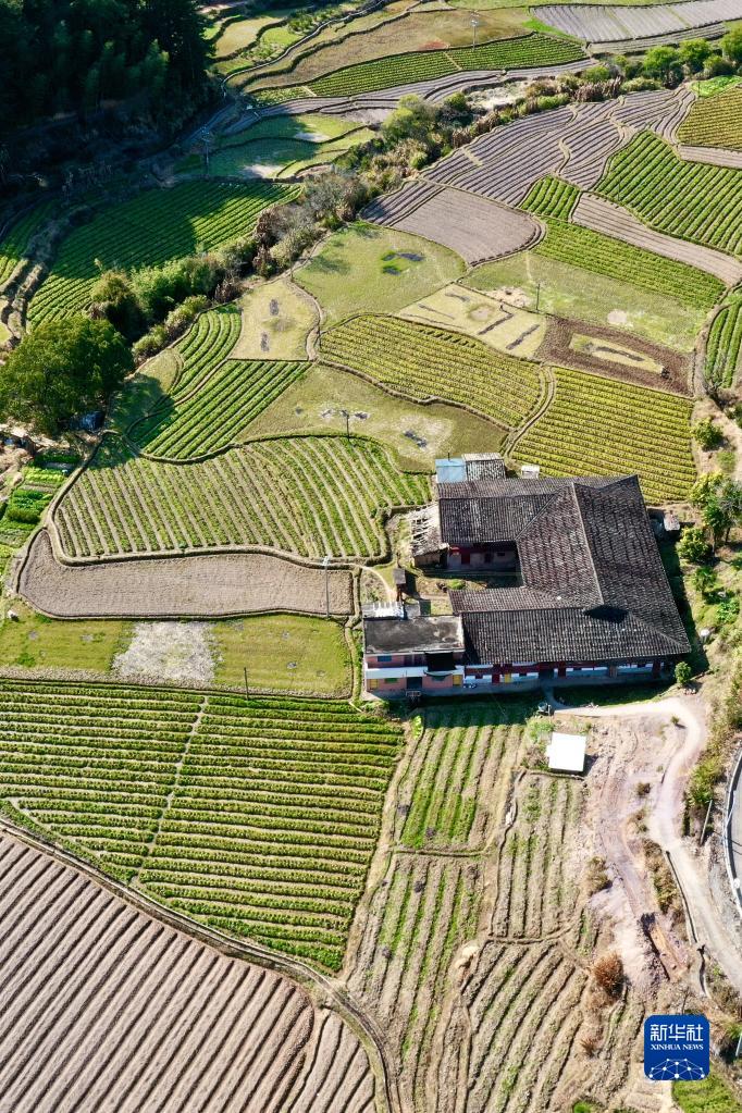 2月24日拍攝的福州市永泰縣蓋洋鄉(xiāng)蓋洋村一處田地(無(wú)人機(jī)照片)。