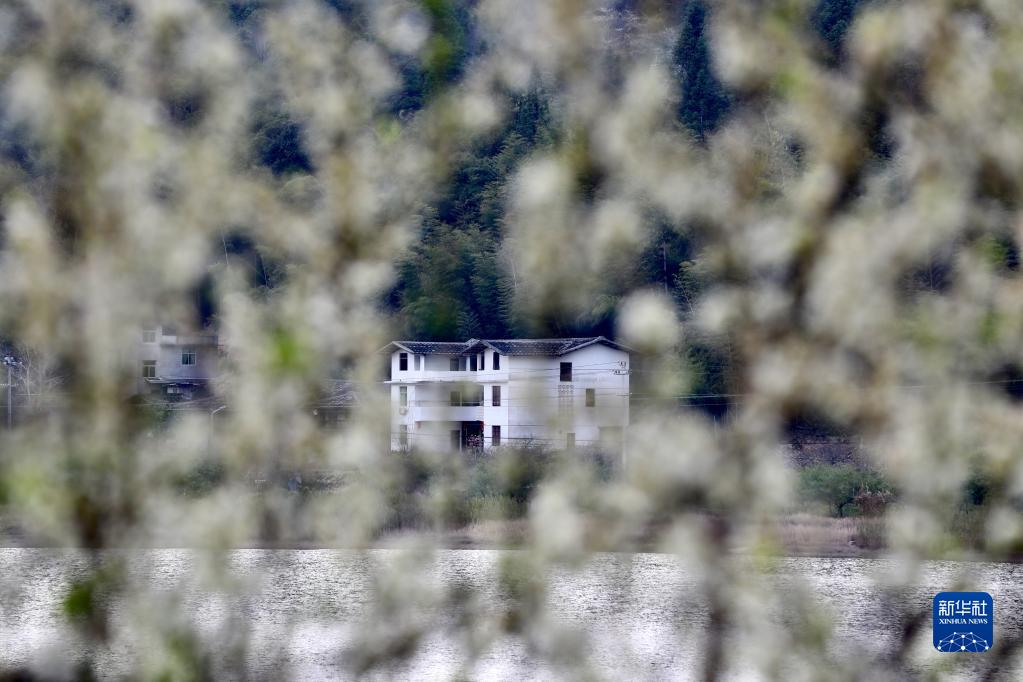 福州市永泰縣嵩口鎮(zhèn)大喜村一處李花掩映下的湖邊民居(2月24日攝)。