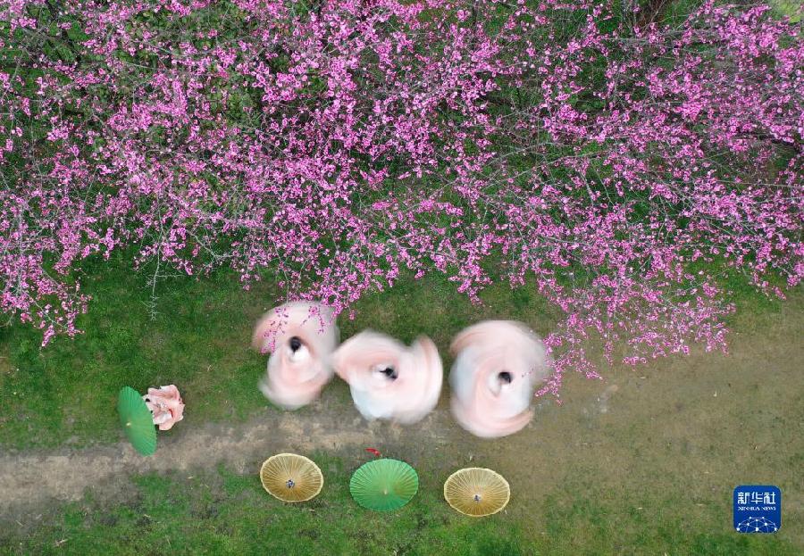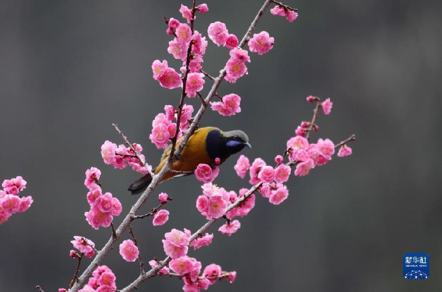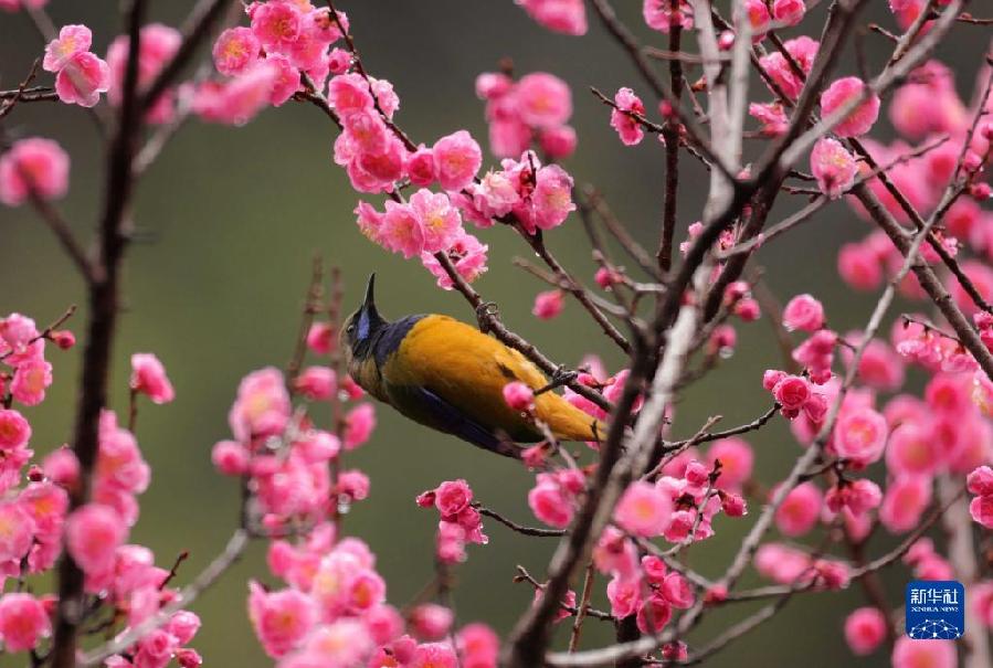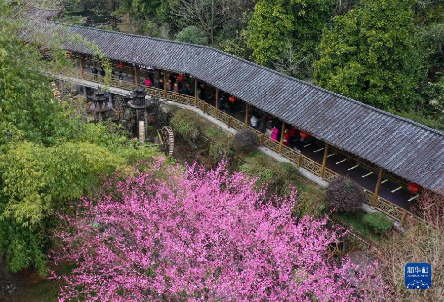 春回大地,在湖南省張家界市武陵源區(qū)黃龍洞景區(qū),梅花爭(zhēng)艷綻放,春意盎然,吸引人們來到戶外踏春賞花,樂享春光。