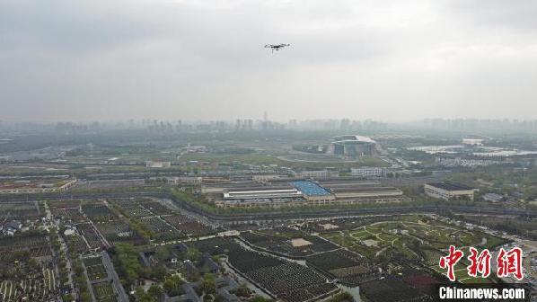 航拍上海市公安局警務(wù)航空隊(duì)警用無(wú)人機(jī)在松鶴公墓上空巡邏。殷立勤 攝