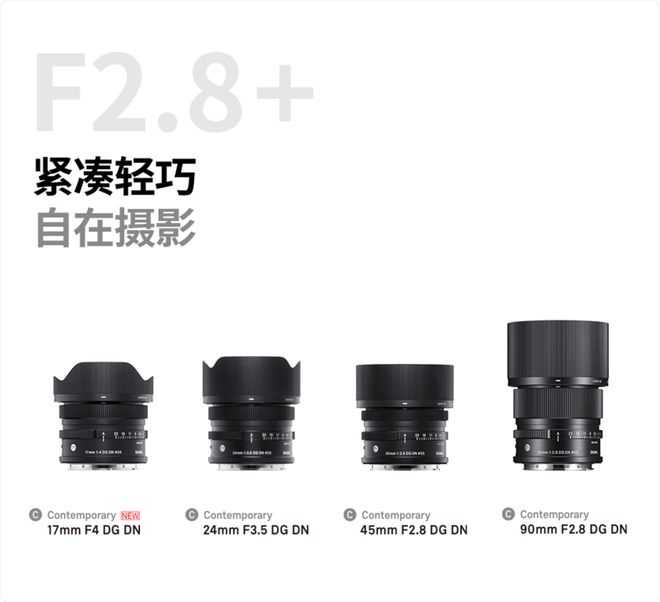 SIGMA Contemporary系列提供多種APS-C畫幅F1.4定焦鏡頭。它們都秉承著高畫質(zhì)與輕便小巧相結(jié)合的概念。用戶可以根據(jù)自己的需求來組合它們,構(gòu)建一個高畫質(zhì)同時又緊湊的攝影系統(tǒng)。