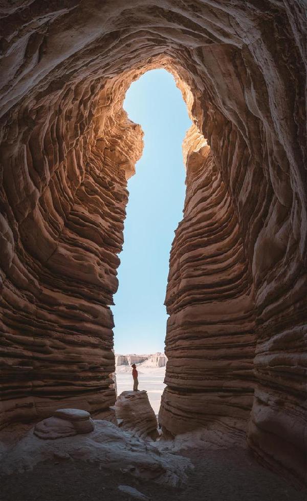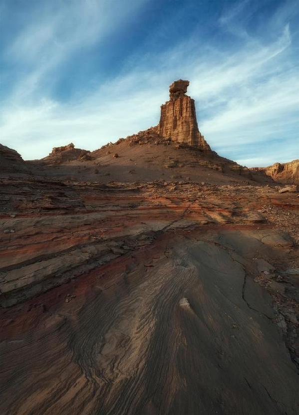 這次前往羅布泊大海道地區(qū)拍攝,因為要背露營裝備,輕量化的器材是我的首選。這支17mm F4 DG DN鏡頭225g的重量完全可以放入口袋隨身攜帶,可以說毫無負擔。17mm的超廣角,能夠很輕松地將高大的雅丹景觀收入畫面,帶給觀眾更夸張的視角震撼。