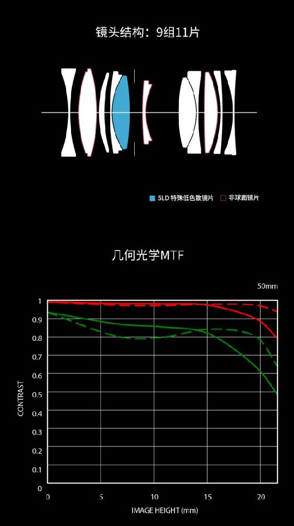 鏡頭結(jié)構(gòu):9組11片(1片SLD和3片非球面鏡片)