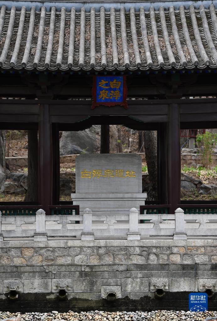 這是4月6日在位于北京市昌平區(qū)的大運河源頭遺址公園里拍攝的“白浮之泉”碑亭和九龍池。