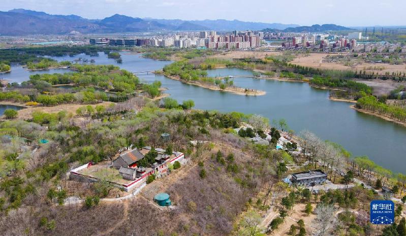 這是4月6日在北京市昌平區(qū)拍攝的大運河源頭遺址公園(無人機照片)。