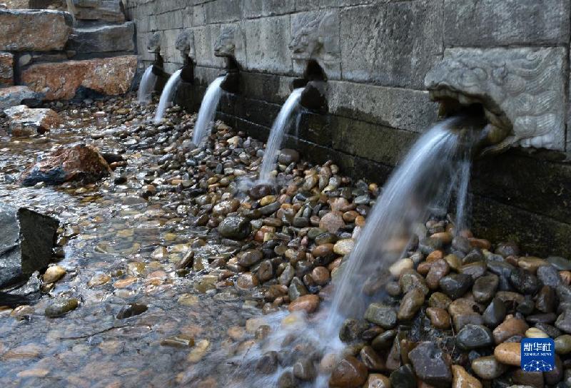 這是4月6日在位于北京市昌平區(qū)的大運河源頭遺址公園里拍攝的九龍池出水口。