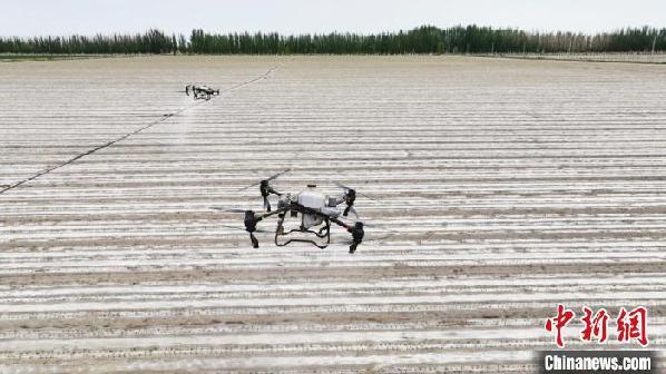 中新網(wǎng)新疆阿拉爾5月10日電 (杜新民 馮斌石繼良)進(jìn)入5月,新疆生產(chǎn)建設(shè)兵團(tuán)第一師阿拉爾市的210萬(wàn)畝棉田陸續(xù)進(jìn)入田管期。在縱橫阡陌的廣袤棉田,無(wú)人機(jī)的加入,讓棉田化調(diào)作業(yè)更高效、更精準(zhǔn),棉田管理也變得更加輕松。