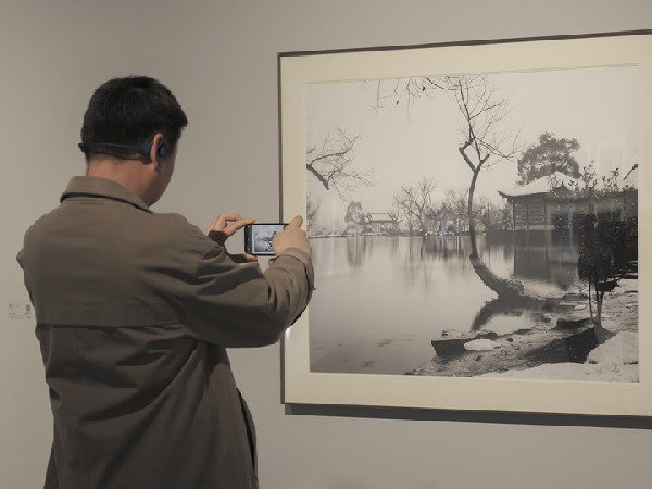 4月15日,觀眾在北京壹美美術(shù)館觀看“平視——老安攝影展”。新華社發(fā)