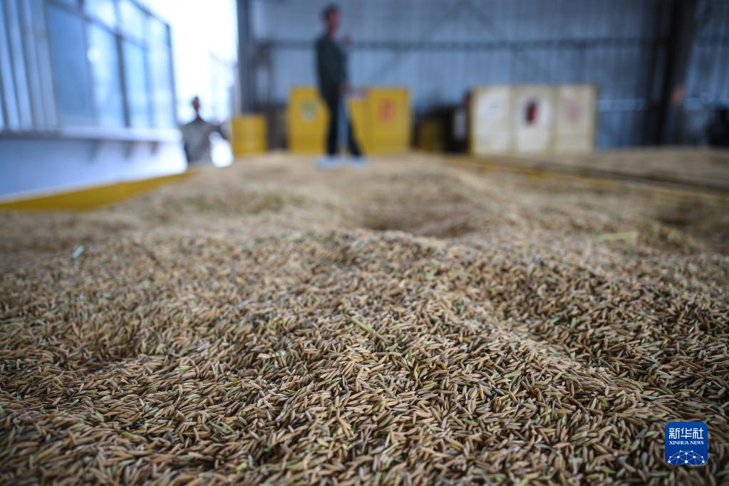 這是6月4日在位于海南省東方市的海南農(nóng)樂南繁科技有限公司制種基地拍攝的剛收獲的稻種。