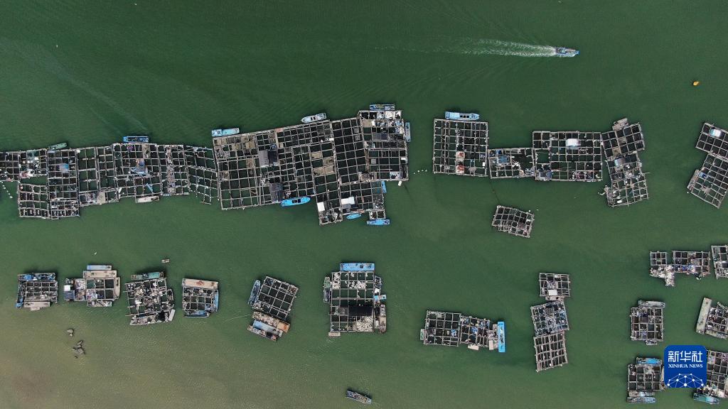 廣東省潮州市饒平縣柘林鎮(zhèn)的海上網(wǎng)箱養(yǎng)殖景觀(7月28日攝,無人機(jī)照片)。