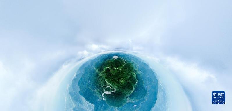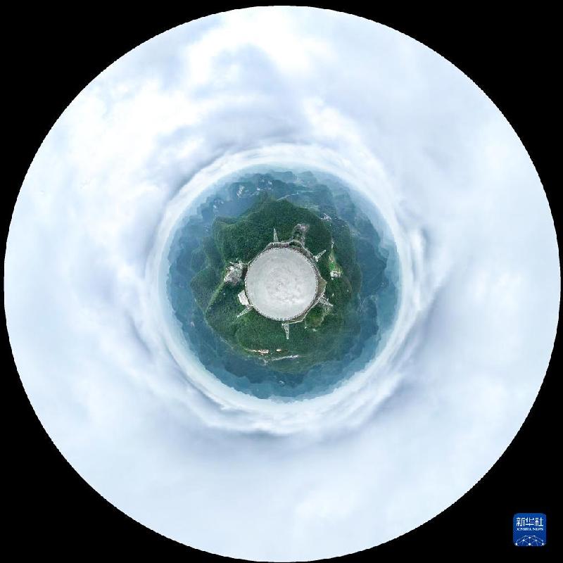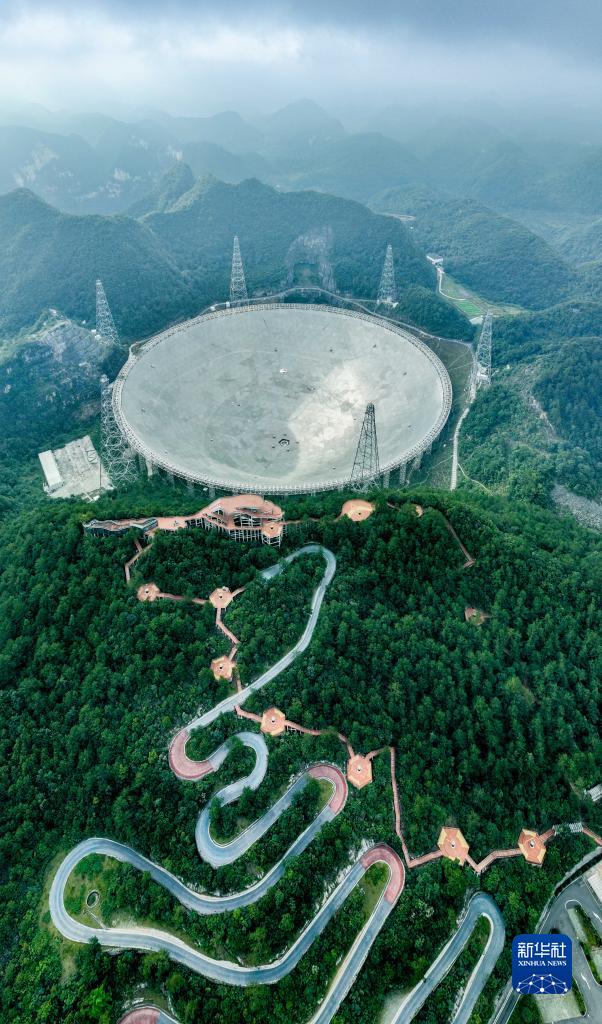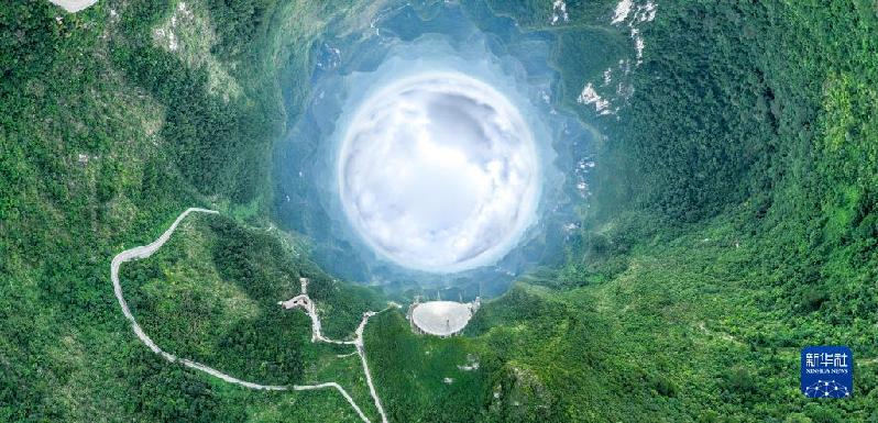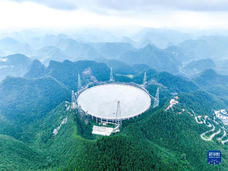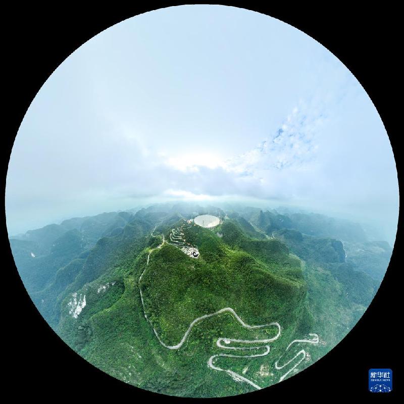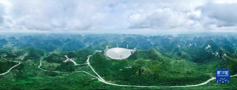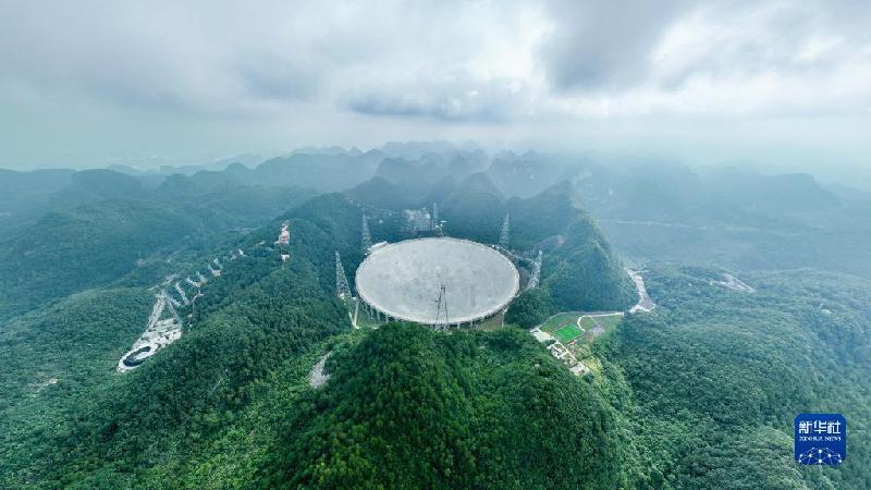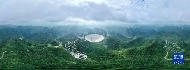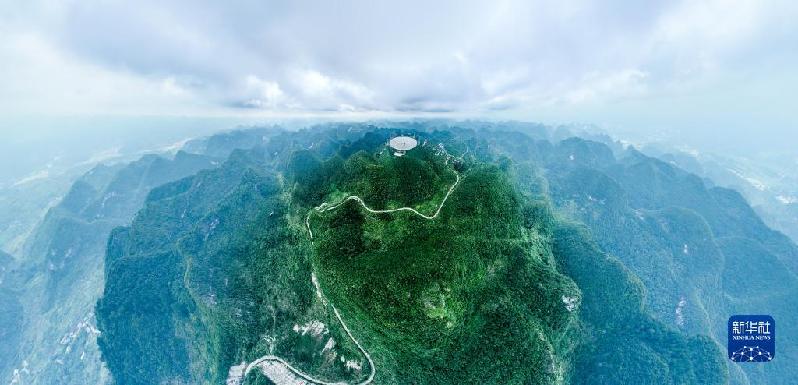 7月26日拍攝的“中國天眼”全景(維護(hù)保養(yǎng)期間無人機(jī)拍攝)。