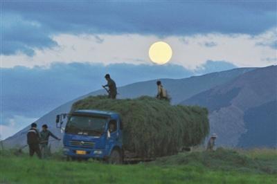 2014年農(nóng)歷七月十五的傍晚,新疆巴里坤草原上,幾位牧民將打好的牧草裝上卡車。遠(yuǎn)處的山脊后方,一輪明月冉冉升起,那一刻,大地上依舊有太陽(yáng)的余光,環(huán)境與月亮的光比并不是很大。光圈f5能增加景深,快門速度1/400秒能讓焦距200毫米的鏡頭保持穩(wěn)定。草原上,牧民們借助月光來(lái)打草的場(chǎng)景,構(gòu)成一幅蠻有趣味的“月亮照”。