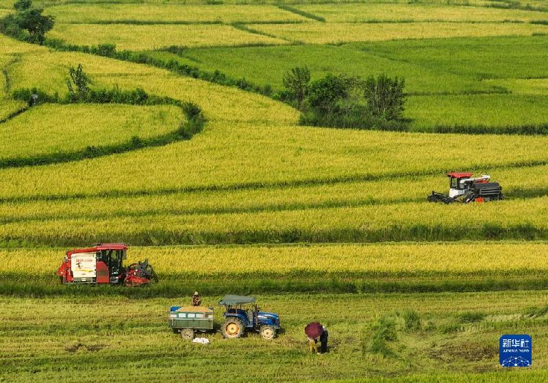 連日來(lái),湖南、湖北、四川等地種植的水稻進(jìn)入成熟收獲季,農(nóng)民操作農(nóng)機(jī)在田野里忙碌,感受豐收的喜悅。