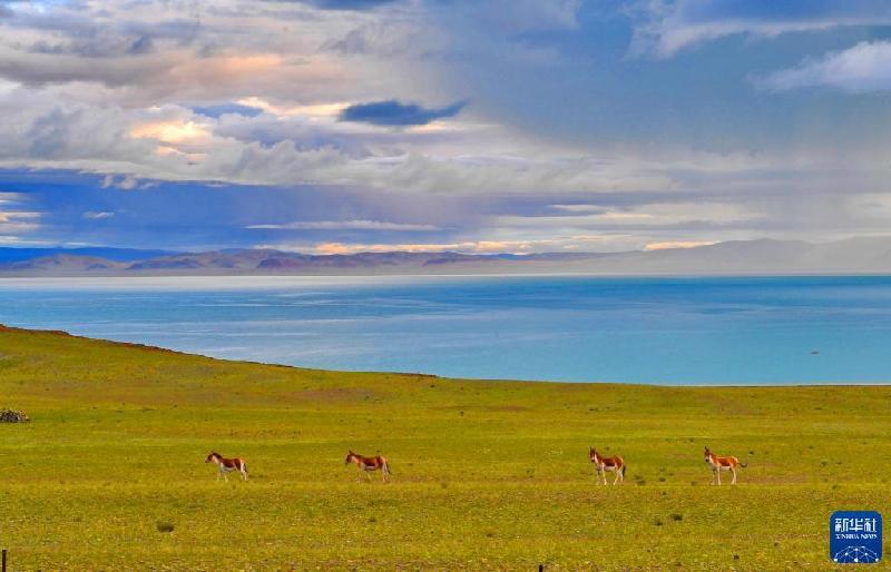 扎日南木錯湖畔的藏野驢(8月19日攝)。