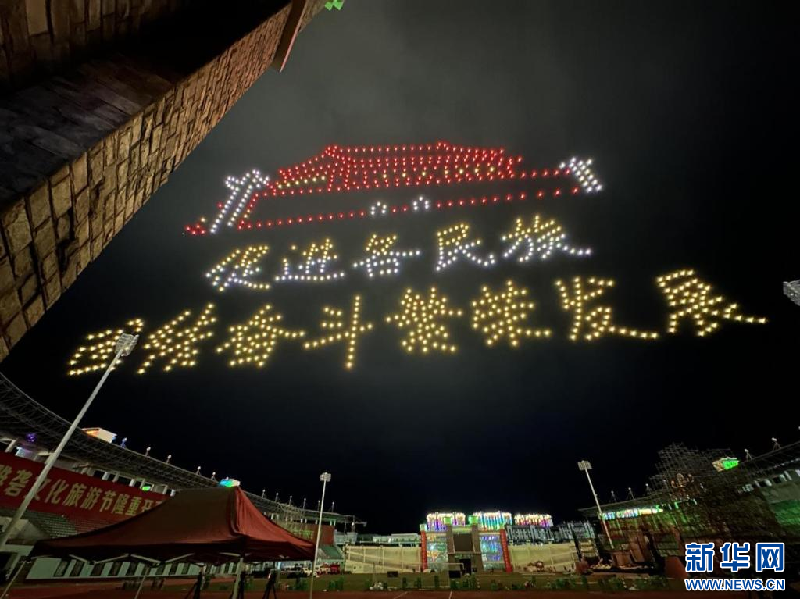 圖為無人機表演秀畫面(8月25日攝)。新華網(wǎng) 柑丹鴦琦攝
