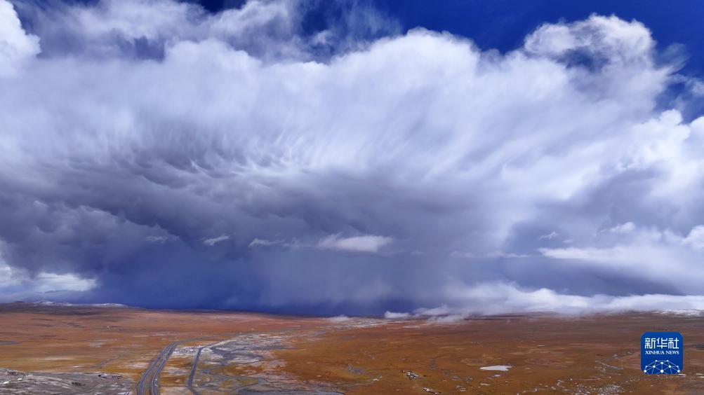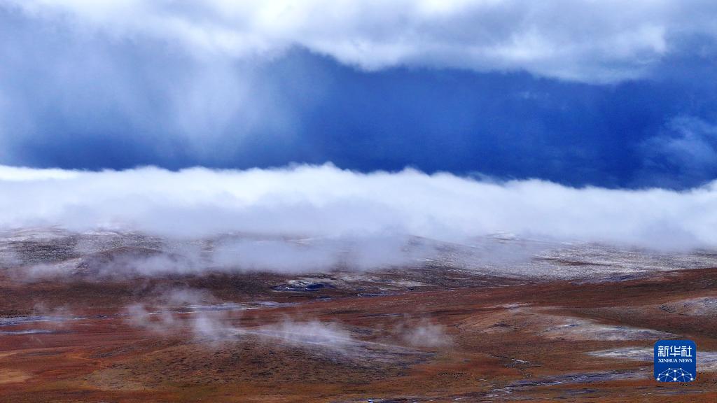 金秋時(shí)節(jié),在位于三江源地區(qū)的青海省玉樹藏族自治州境內(nèi),雪山、草原、云海、牛羊組成一幅壯美的秋日畫卷。