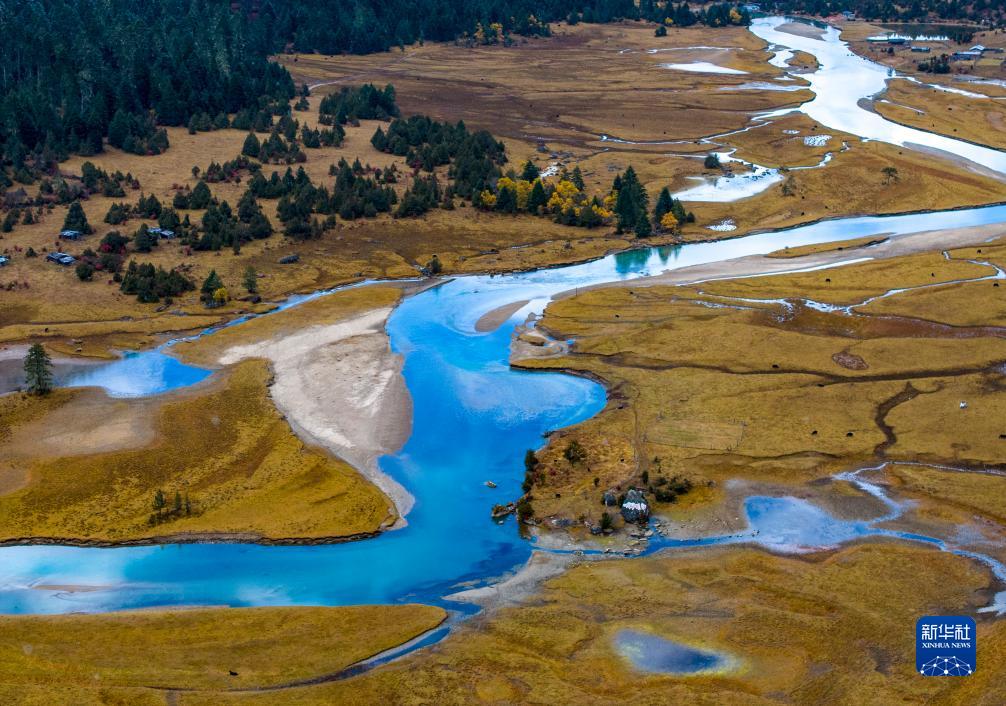 時值金秋,西藏林芝市秋色已濃,黃葉與初雪交織,流水并雪山輝映,景色如詩如畫。