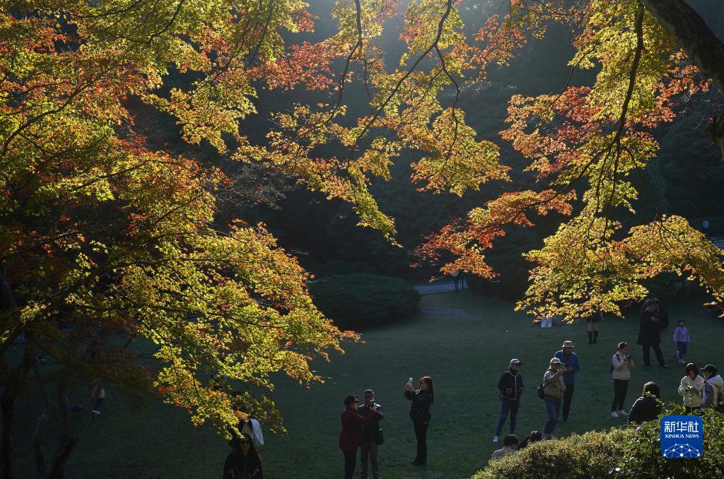 游人在廬山植物園觀賞楓葉(11月18日攝)。