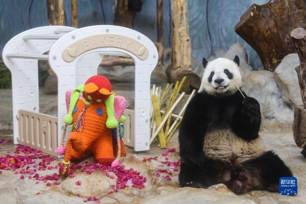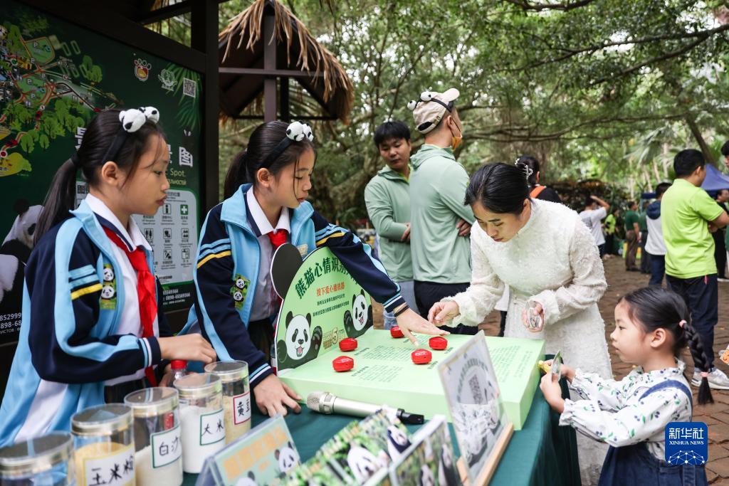 當(dāng)日,為慶祝大熊貓“貢貢”和“舜舜”來到海南五周年,位于??诘暮D蠠釒б吧鷦?dòng)植物園為這對(duì)“熊貓兄弟”準(zhǔn)備了玩具和竹筍、水果等美食,同時(shí)舉辦多種科普活動(dòng)和互動(dòng)游戲,吸引不少游客參加。