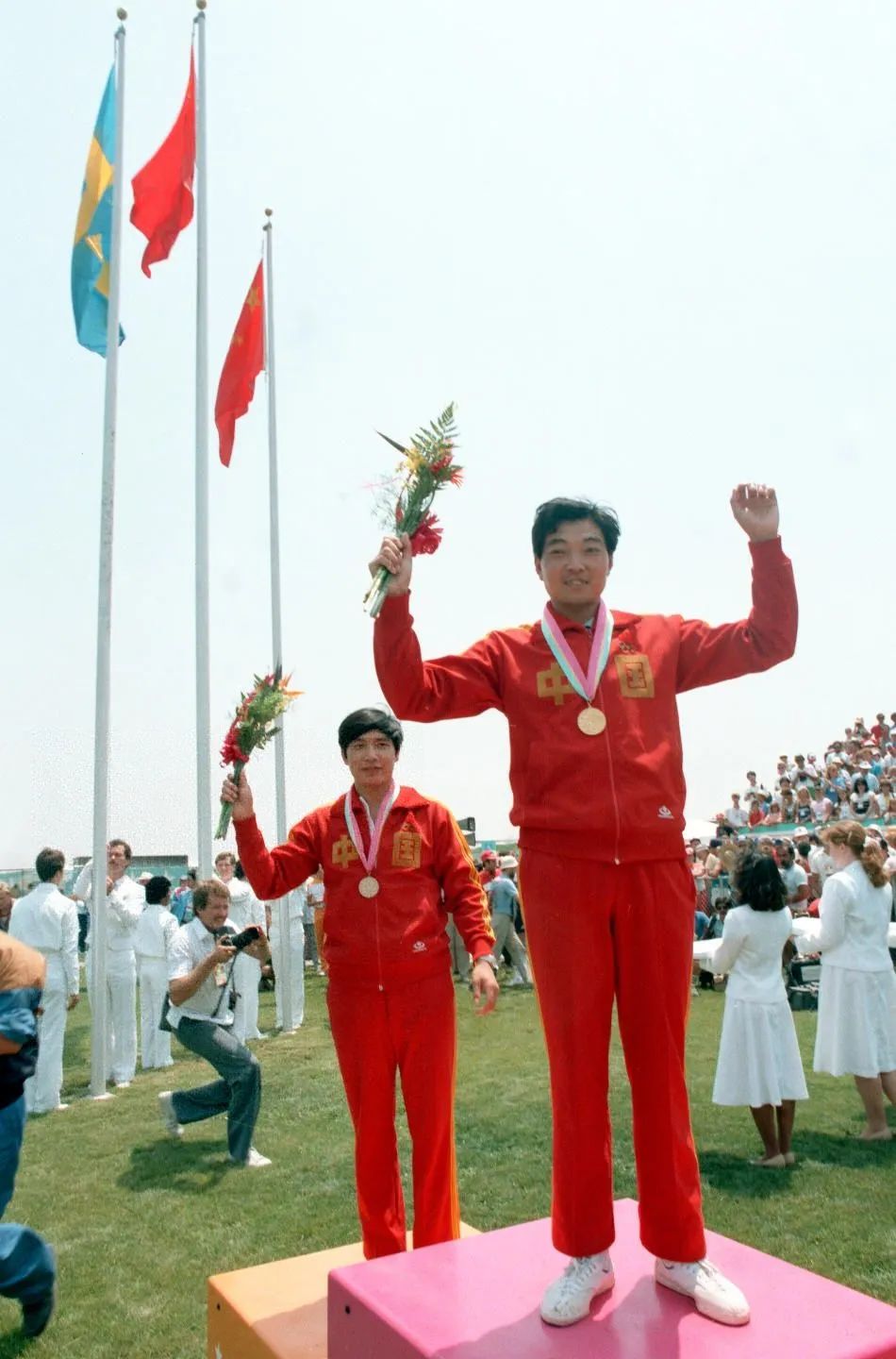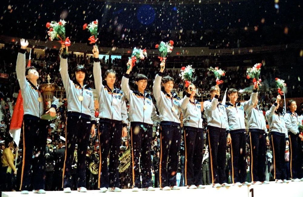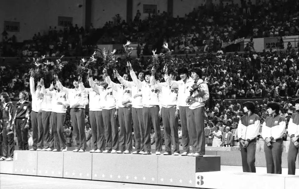 ↑中國女排奪得1984年洛杉磯奧運會冠軍。