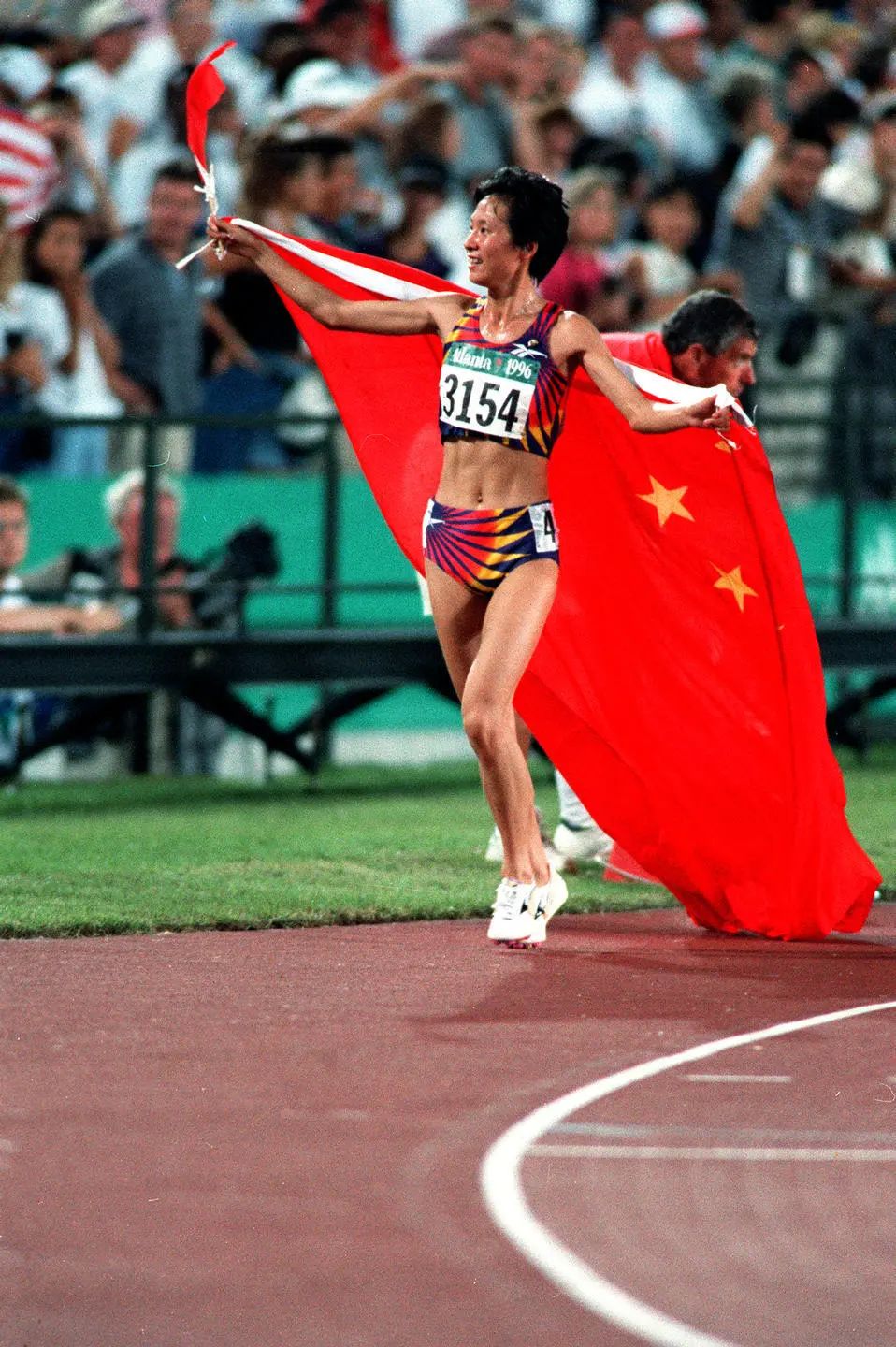 ↑1996年,王軍霞在亞特蘭大奧運會女子5000米比